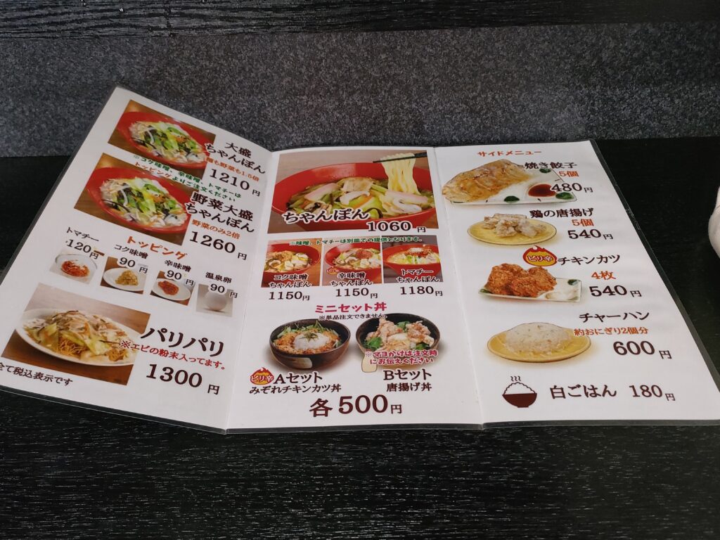 いろんな種類のちゃんぽんがありますが、シンプルなちゃんぽんを注文。