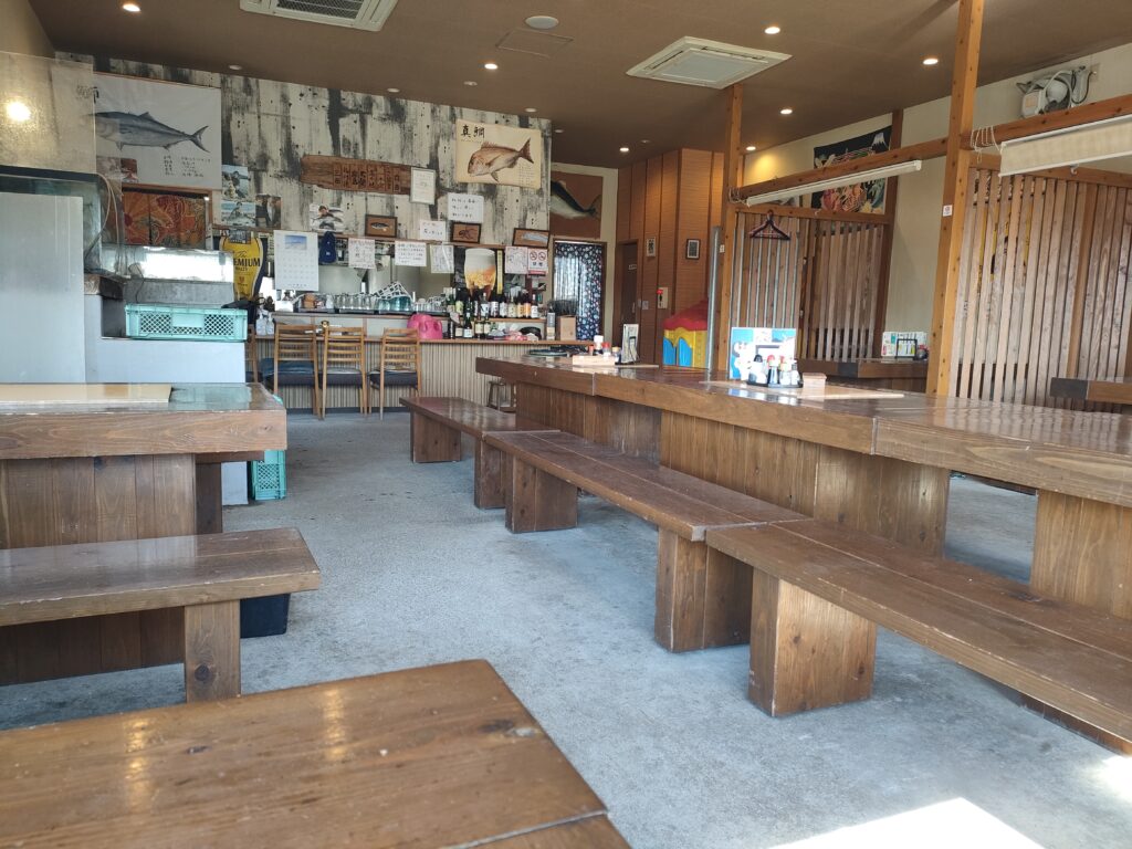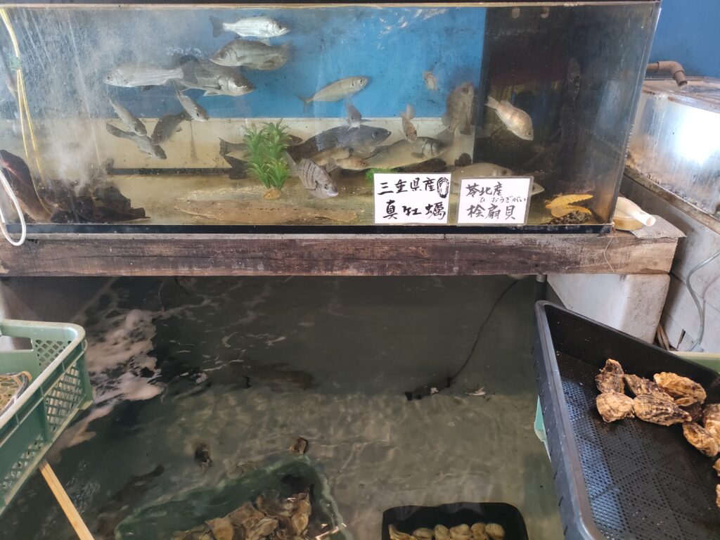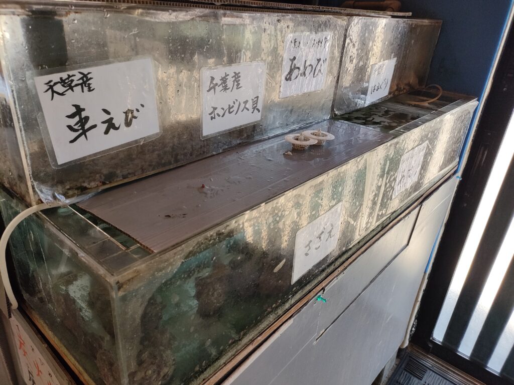 店内には生簀(いけす)があり、潮の香が店内に広がります。