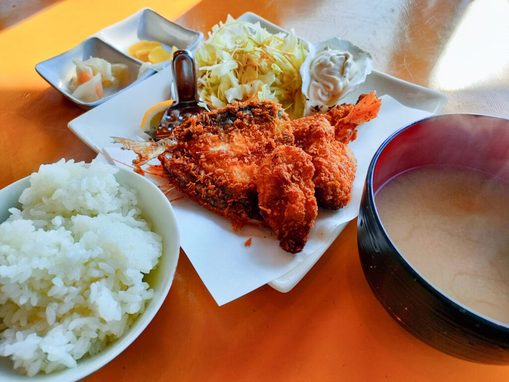 牡蛎フライやエビなどが入っており、ご飯の量が選べます。